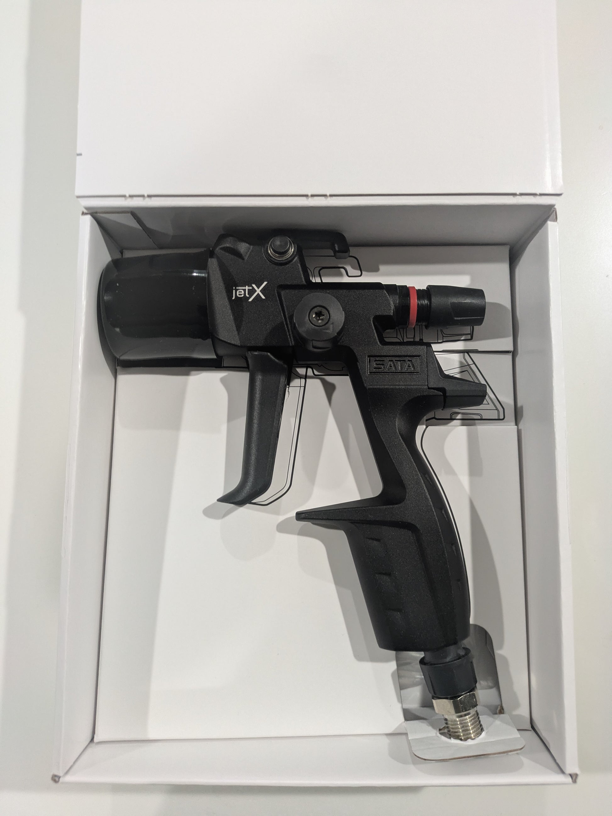 The jet X is the most advanced paint spray gun from SATA with its innovative nozzle concept. The nozzle system is the centerpiece of the spray gun, based on the innovative labyrinth airflow system. It guides the air in the nozzle in such a way that it exits each orfice at exactly the same pressure and free of turbulence and pulsation, achieving exceptionally fine and homogeneous atomization. The jet X DIGITAL ready - in addition to the nozzle technology and ergonomics this spray gun option is prepared for digitization with the SATA QAC (Quick Adam Connector). The adam X or adam X pro can be connected directly to the spray gun without a docking station. Do you want your jet X to remain as standard? If so, you can use the QAC cover with hand rest (included) to cover where the adam X would attach.Features